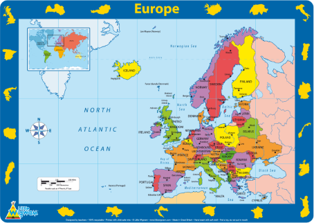 - Mini World Map to show relative location of Europe